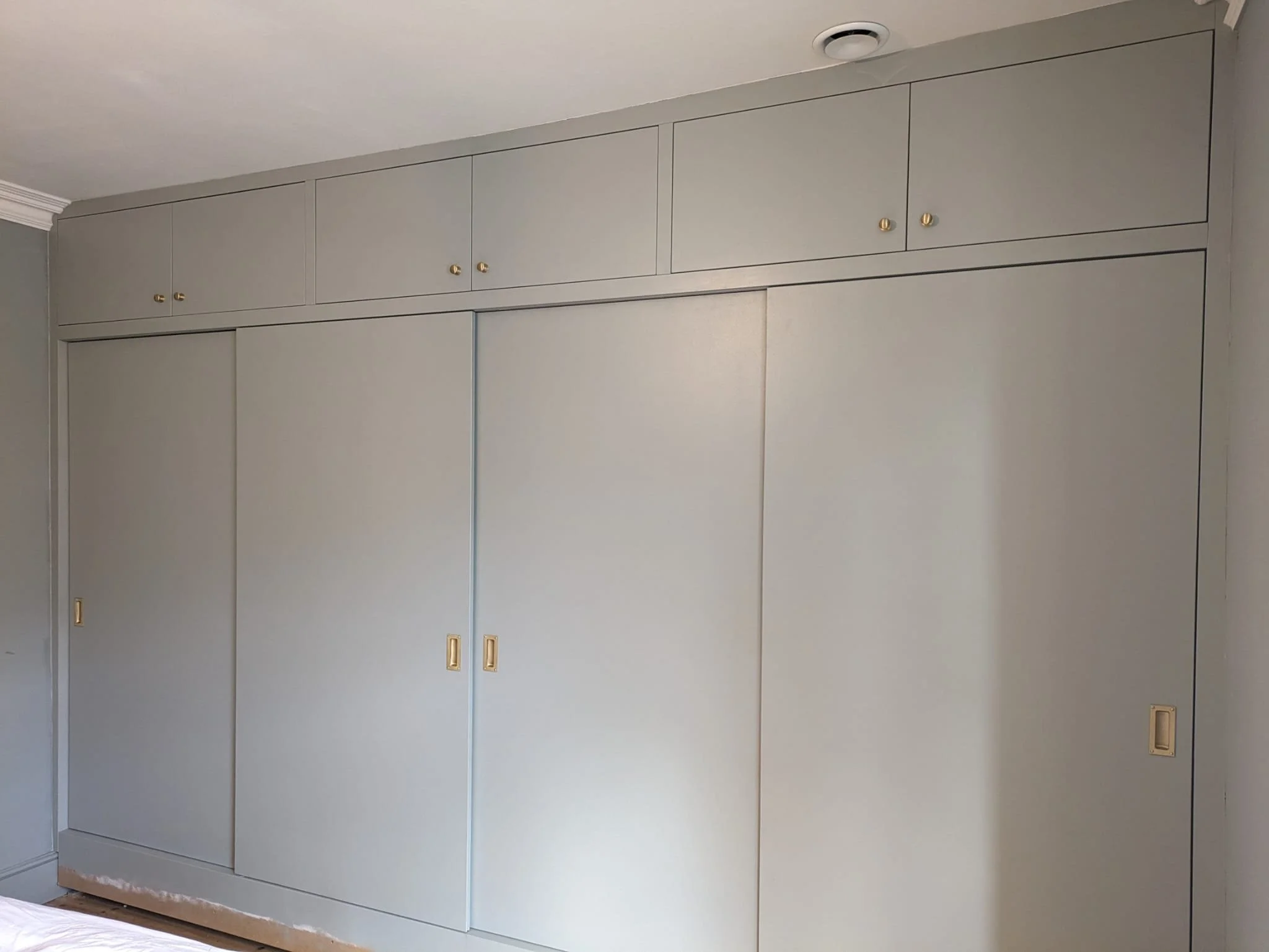 Sliding doors and plenty of storage space blend seamlessly with the existing wall, painted in the same colour for a subtle, integrated look. The bottom section was finished on-site by the decorators.